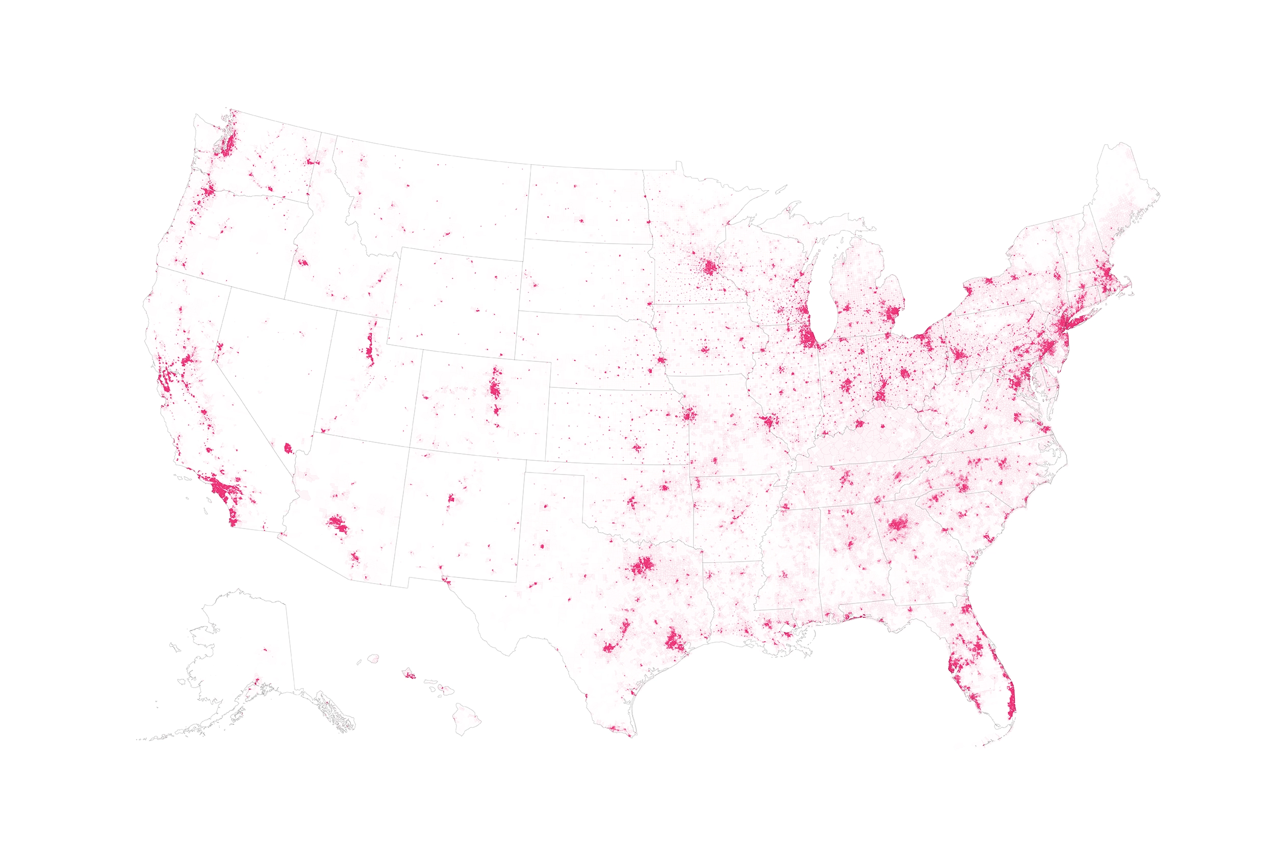 An entrenched two-party system, which has in recent years shifted to align itself almost perfectly with the rural-urban axis, has exacerbated the political divide in the US. In 2016, ZIP code density already did a better job of predicting voting for Trump or Clinton at the urban or rural end of the spectrum than any other obvious variable (e.g. race, gender, education, wealth). Zero survey respondents in the densest ZIP codes answered “yes” to “Did you vote for Donald Trump in the November 2016 presidential election?” while about 95% answered “yes” to “Did you vote for Hillary Clinton in the November 2016 presidential election?” In the sparsest ZIP codes, three quarters of the respondents had voted for Trump, while the Clinton vote dropped to zero. This degree of political sorting by population density is astonishing.